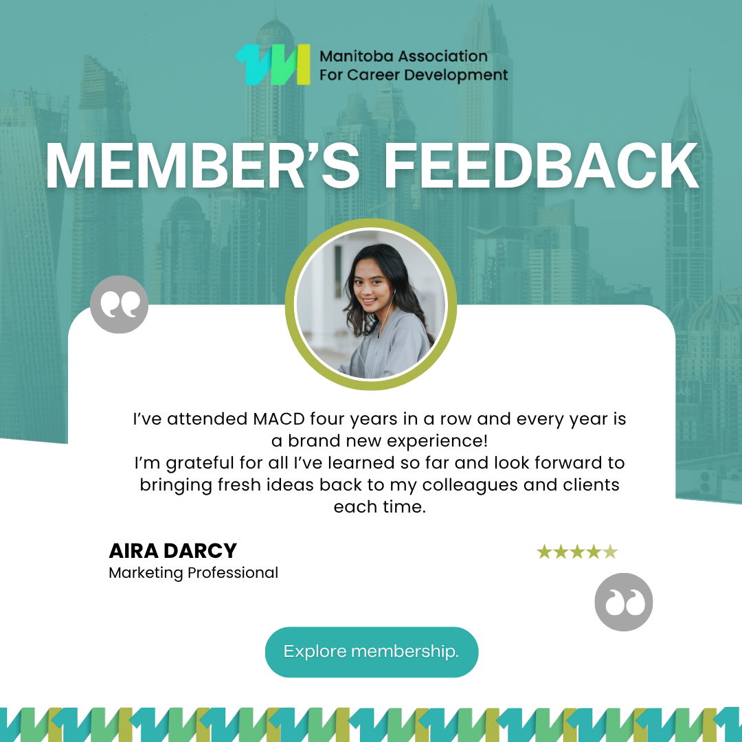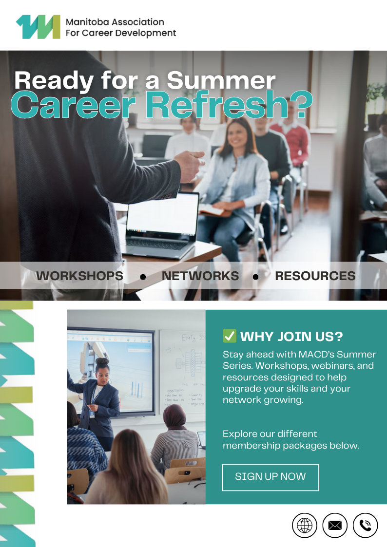 I developed a three-week digital campaign content and calendar for the Manitoba Association for Career Development (MACD) to boost new sign-ups and member renewals. The campaign target students, early-career professionals and career practitioners in Manitoba. Campaign will run on Facebook, Instagram, LinkedIn and email.